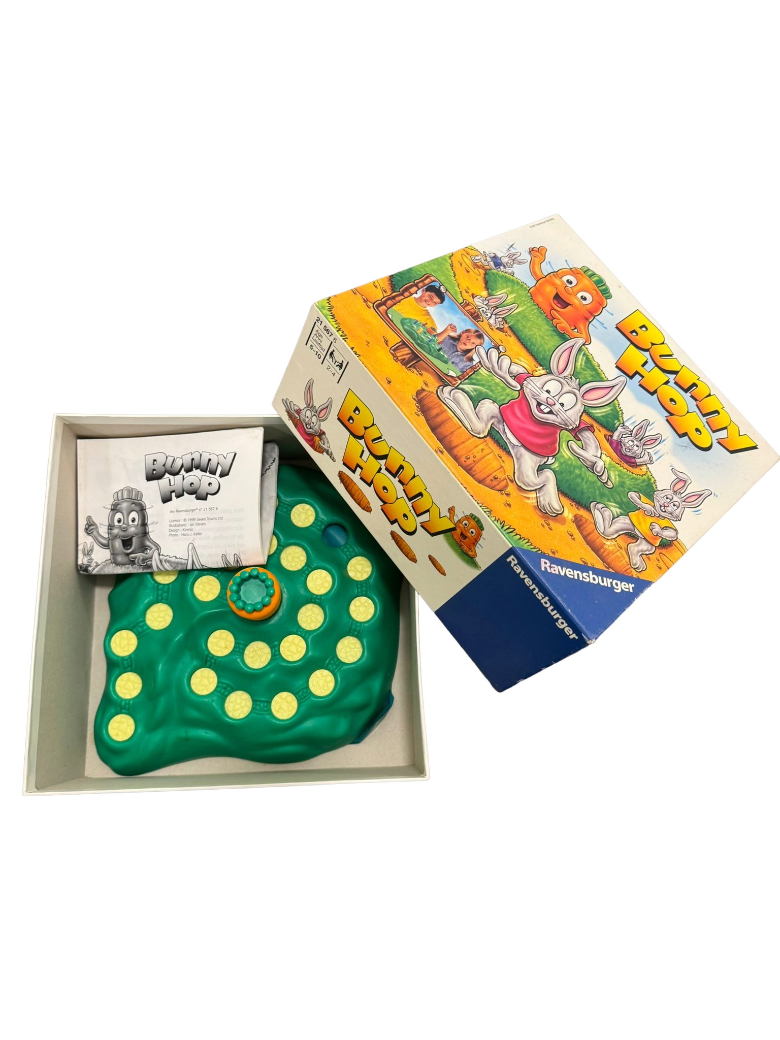 Leuk familiespel waarbij konijntjes racen naar de top van de heuvel – maar pas op voor vallende wortels en onverwachte valkuilen! Deze set is 100% compleet en gecontroleerd op aanwezigheid van alle onderdelen (konijntjes, spelbord, draaischijf, spelregels).